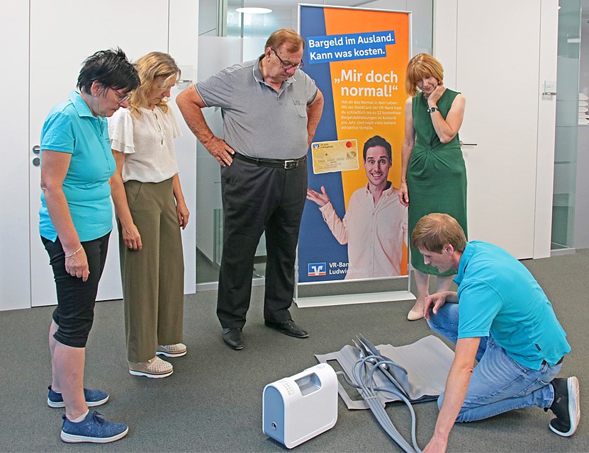 Unsere engagierten Pflegerinnen und Pfleger der Sozialstation des Krankenpflegevereins müssen mitunter ganz schön zupacken können. „Für die einzelne Pflegerin oder den einzelnen Pfleger kommt es bei häuslichen Einsätzen mitunter vor, dass Patienten auf dem Boden in misslicher Lage aufgefunden werden. Dann heißt es anzupacken und die Person wieder aufzuheben. Wenn hierzu die Kraft nicht ausreicht, war oft guter Rat teuer“, berichtete Dietmar Glaubitz, Vorsitzender des Krankenpflegevereins, der Kundenberaterin Bettina Scholz der VR-Bank.